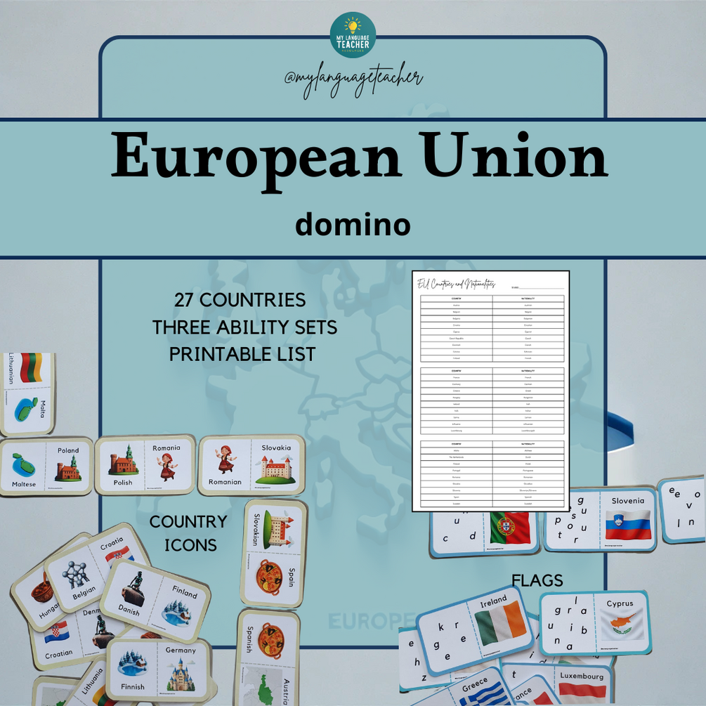 Bring Europe into your classroom with this engaging EU Domino Set, featuring all the countries that are part of the European Union in 2025. Designed specifically for language teachers, this pack offers three levels of difficulty, making it perfect for both Primary and Lower Secondary students.